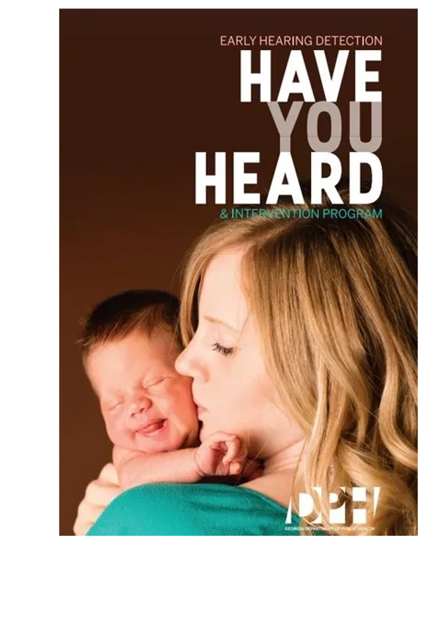 The Early Hearing Detection and Intervention (EHDI) program ensures that all Georgia babies be screened for hearing loss before 1 month of age. The screening is quick, painless, and typically done before the baby leaves the birthing facility. Early identification of infant hearing loss and early treatment helps babies develop language, communication, and brain development.